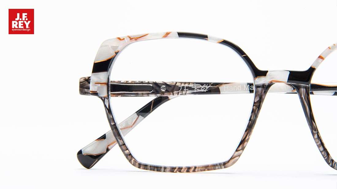 De term 'colorful acetate' verraadt het al: deze brillen zijn volledig gemaakt van acetaat. Met een montuur dat is gemaakt op basis van 75% katoen, mag u vertrouwen op kwaliteit van het hoogste niveau. Acetaat staat bekend om zijn eigenschap kleur optimaal tot zijn recht te laten komen en daar maakt J.F. Rey optimaal gebruik van. De mooiste kleurencombinaties en motieven worden verwerkt in de unieke monturen van het eyewear label. Extra mooi is de detaillering, die van dichtbij nóg meer indruk maakt.